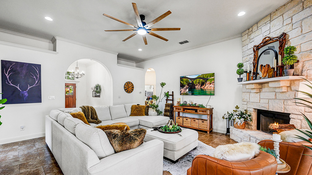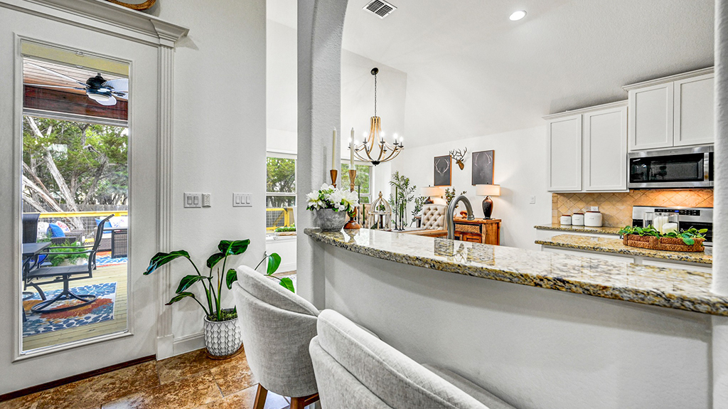This home has been completely transformed and looks like a model home. The seller has thoughtfully chosen the best color scheme and given it a light and bright look all around. An enormous deck has been added to the backyard, which is perfect for entertaining friends and family. The kitchen cabinetry has been painted and given it a much needed fresher look. A dedicated study or second living space is just off of the kitchen area. The kitchen has a center island, stainless steel appliances, and a walk in pantry. The primary bedroom has tall ceilings and the primary bathroom has a walk in closet, separate shower and jetted tub along with double vanities. There are two additional bedrooms off of the front of home with large closets. So close to all the acclaimed schools in Wimberley. Blue Hole Elementary, Jacobs Well Elementary, Danforth Junior High and Wimberley High School. Close to downtown shopping, Blue Hole swimming hole, and the Blue Hole regional park hike and bike trail.