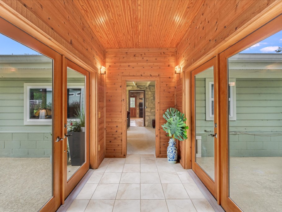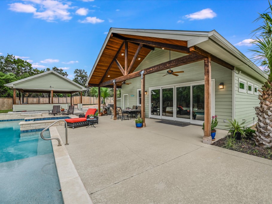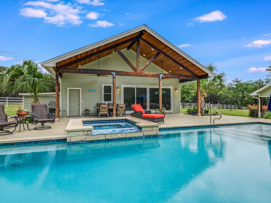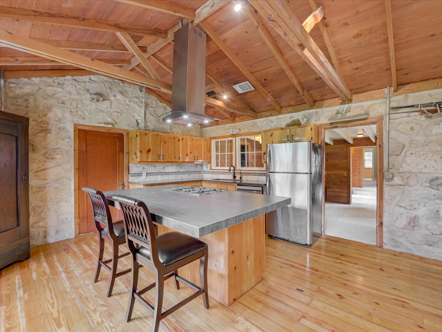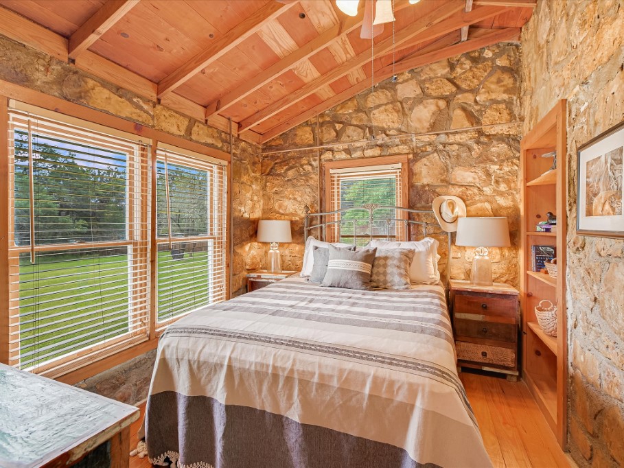 1111 Deer Lake Road is a truly unique property with a rich history and special features. Originally part of a large ranch subdivided in the 1930s, it now sits on 1.3 acres with shared access to a private 20 acres Reserve on Lone Man Creek. The main house was originally a stone hunting and fishing cabin from the 1930s and feature a large primary bedroom, a spacious primary bathroom, living area, kitchen, dining area, and a guest room with a full bathroom. The 1100 square foot pool house, built in 2016 by Wubbena Fine Homes, is perfect for entertaining with an open modern kitchen/living area and large bedroom. The spacious pool house bathroom opens from both the pool and interior of the house. The short trail along Wildcat Hollow takes you to a dammed-up part of Lone Man Creek, which forms the 30-feet deep Arrowhead Lake and 20 acre Skyline Reserve. Arrowhead Lake is great for fishing, kayaking and paddle-boarding. Wildcat Hollow and Arrowhead Lake are some of the best fishing spots in all of Wimberley! Deer Lake Road is a dead end road, with no through traffic, so its a very peaceful pocket of Wimberley teaming with wildlife. Homes on this road and the reserve rarely come available!