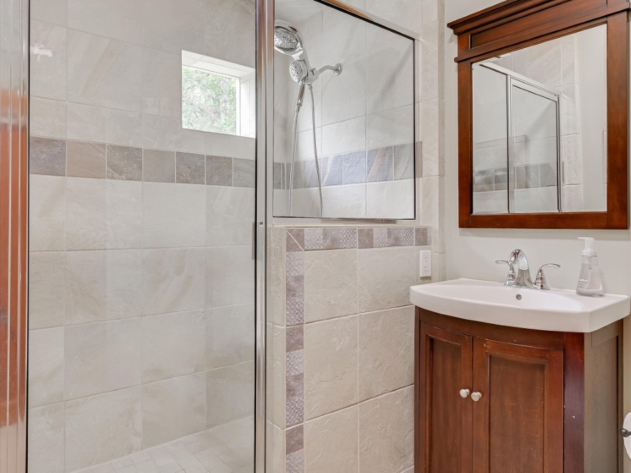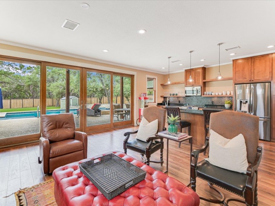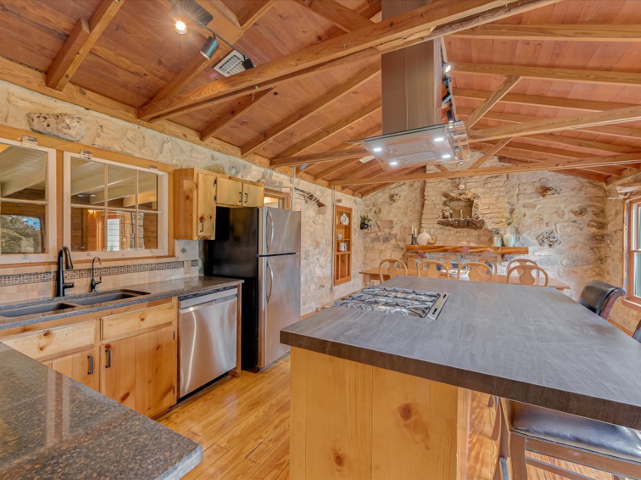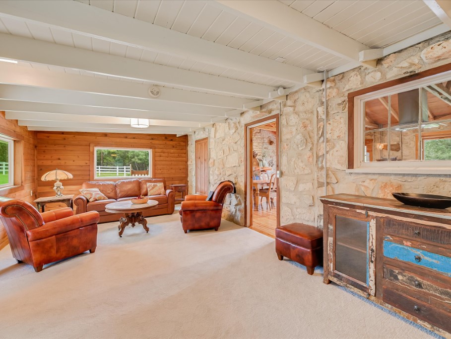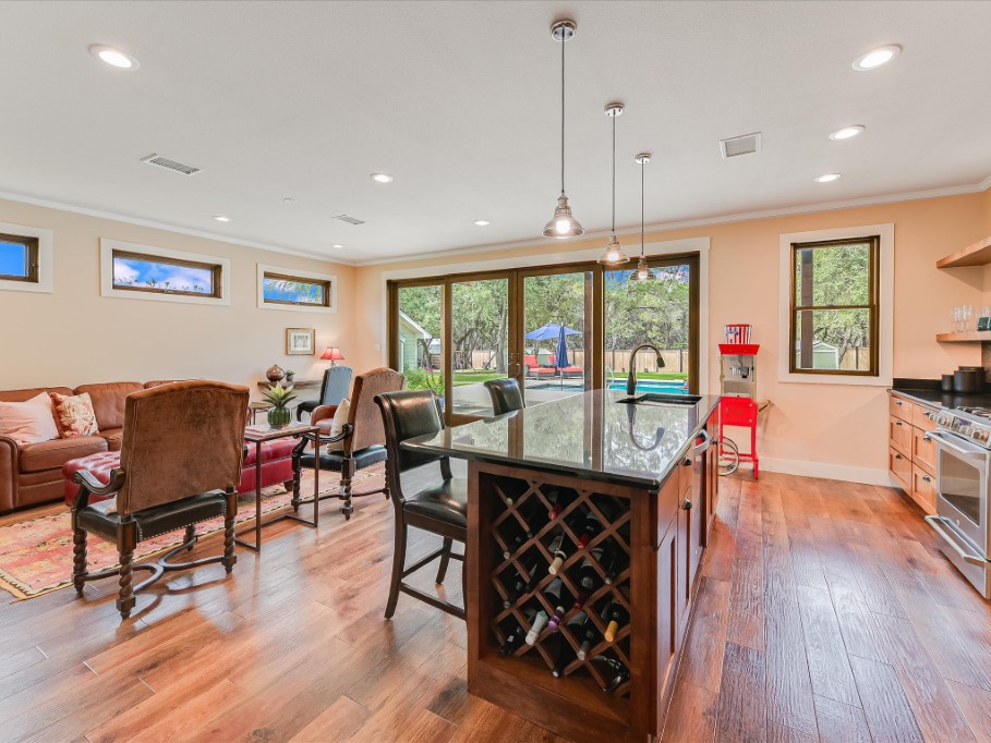 1111 Deer Lake Road is a truly unique property with a rich history and special features. Originally part of a large ranch subdivided in the 1930s, it now sits on 1.3 acres with shared access to a private 20 acres Reserve on Lone Man Creek. The main house was originally a stone hunting and fishing cabin from the 1930s and feature a large primary bedroom, a spacious primary bathroom, living area, kitchen, dining area, and a guest room with a full bathroom. The 1100 square foot pool house, built in 2016 by Wubbena Fine Homes, is perfect for entertaining with an open modern kitchen/living area and large bedroom. The spacious pool house bathroom opens from both the pool and interior of the house. The short trail along Wildcat Hollow takes you to a dammed-up part of Lone Man Creek, which forms the 30-feet deep Arrowhead Lake and 20 acre Skyline Reserve. Arrowhead Lake is great for fishing, kayaking and paddle-boarding. Wildcat Hollow and Arrowhead Lake are some of the best fishing spots in all of Wimberley! Deer Lake Road is a dead end road, with no through traffic, so its a very peaceful pocket of Wimberley teaming with wildlife. Homes on this road and the reserve rarely come available!