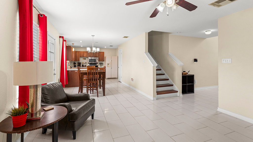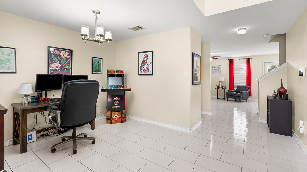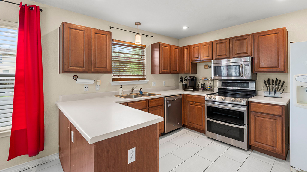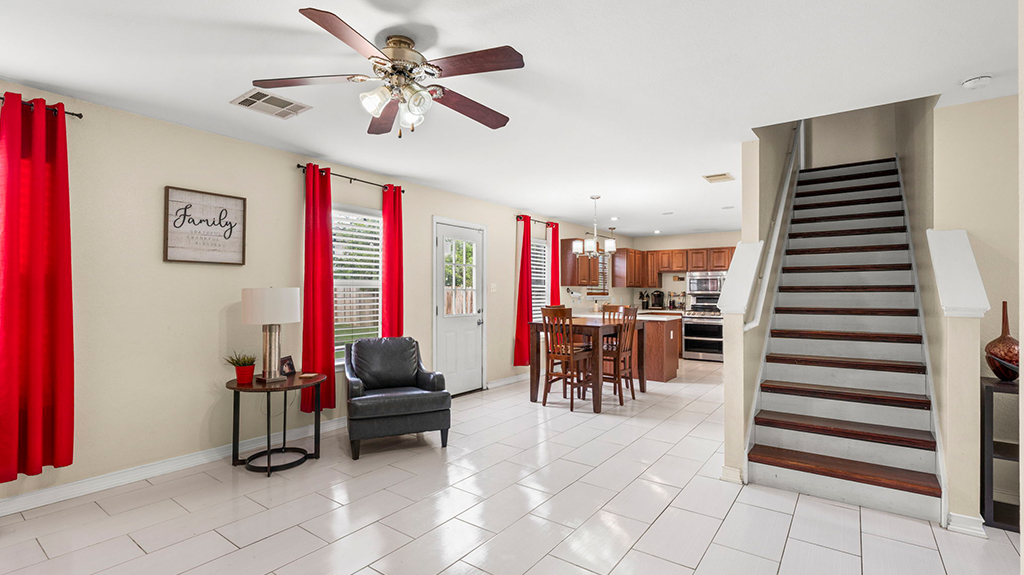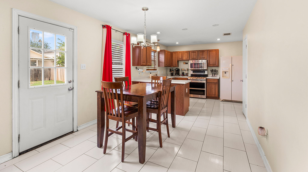 This property showcases beautiful large tile and rich cherry hardwood flooring throughout the downstairs living spaces. The open kitchen features stainless steel appliances, dark wood cabinets, and a lovely, bright breakfast nook. For more formal occasions, there is a separate dining room perfect for entertaining. Upstairs, you will find well-proportioned bedrooms that share a full bathroom. The master suite is a true retreat, offering double sinks in the bathroom and a large walk-in closet. Elegant cherry hardwood flooring extends throughout the entire upstairs. The home’s location is incredibly convenient, with easy access to Highway 290 and toll roads, placing you just minutes away from Austin.