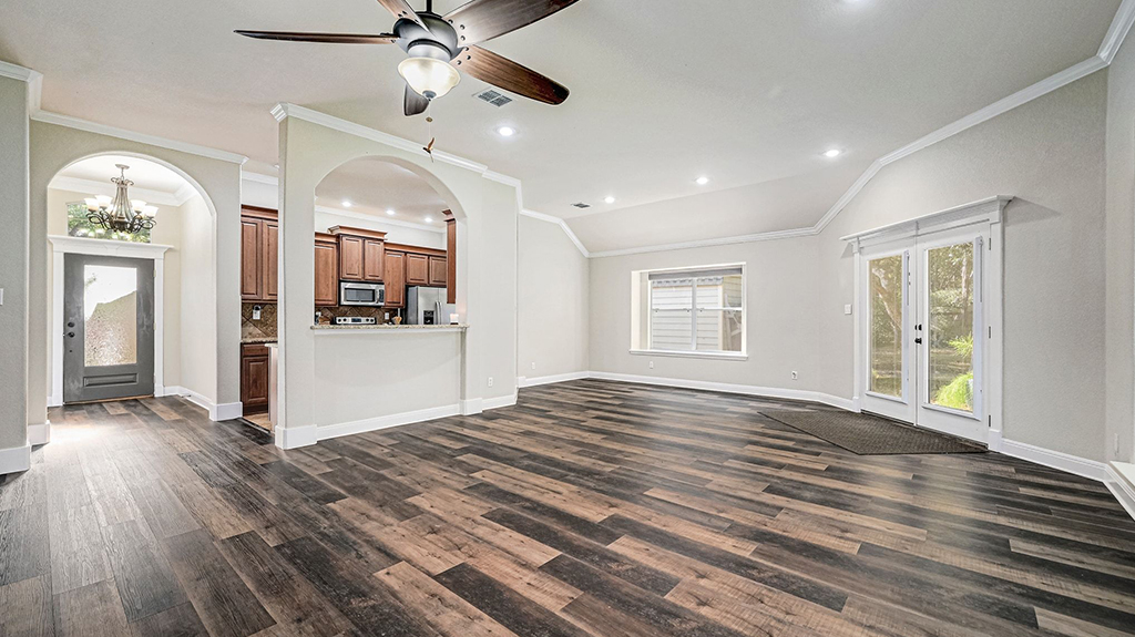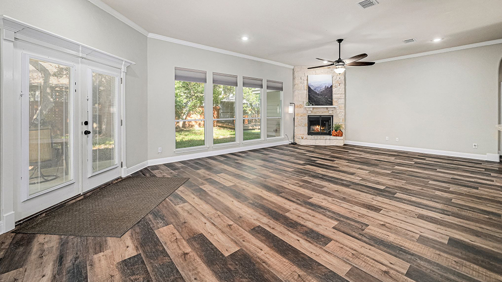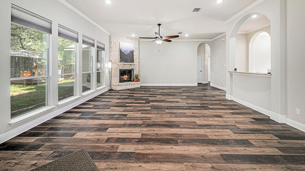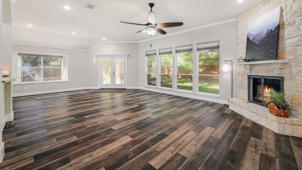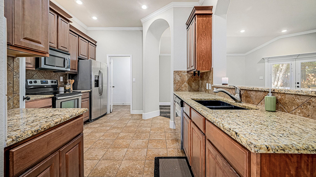 Well-maintained home with completely fenced in back yard sitting on a cul-de-sac. Custom fencing on the front of the home gives it a unique look. There are two sheds on the property. One has electricity. This 3 bedroom/2 bath home has luxury vinyl flooring, open kitchen, dining and living room with stone wood burning fireplace. Primary bathroom has a large walk-in shower, separate double vanities and large walk-in closet. Kitchen is open to the living room and has plenty of cabinets, a walk-in pantry and stainless steel appliances. The backyard is awesome. It has two sheds, one with power, lots of shade trees too.