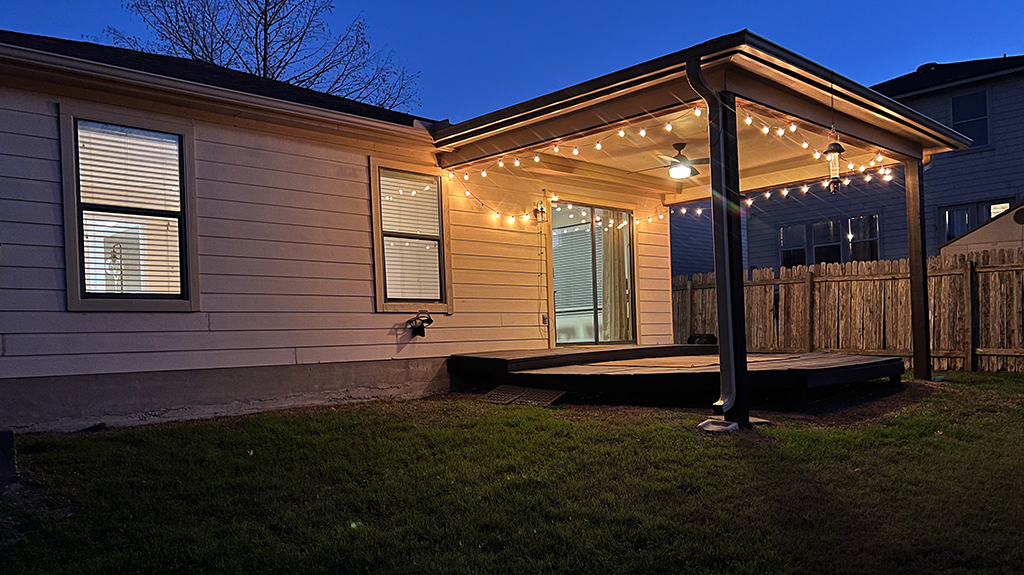 Enjoy peaceful greenbelt living in this 3-bedroom + study home in Waterleaf, backing to Plum Creek Nature Preserve with trail access just three homes away. The open floor plan offers easy everyday living with laminate and tile flooring throughout — no carpet. A spacious dine-in kitchen features abundant cabinet space, stainless steel refrigerator and dishwasher, and flows comfortably into the main living area. The generously sized primary suite overlooks the greenbelt, creating a relaxing retreat at the end of the day. Double-paned windows provide added comfort and efficiency. Built-in cabinetry in the laundry room adds storage, with washer and dryer conveying. Outside, the shady lot is enhanced by mature trees, a xeriscaped front yard with lighting, new sod, and a recently repaved driveway. The covered backyard deck and privacy fence create an inviting space to unwind or gather with friends. Waterleaf residents enjoy access to a community pool, playgrounds, volleyball and basketball courts, and more — all in a convenient location with easy access to major highways, shopping, schools, and restaurants.