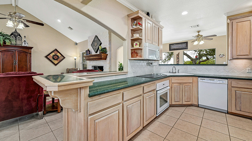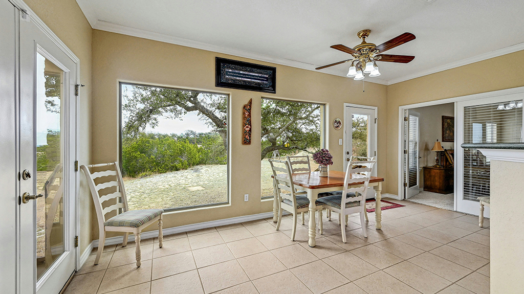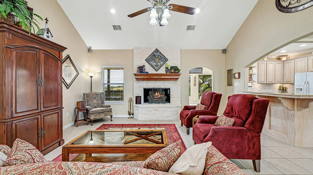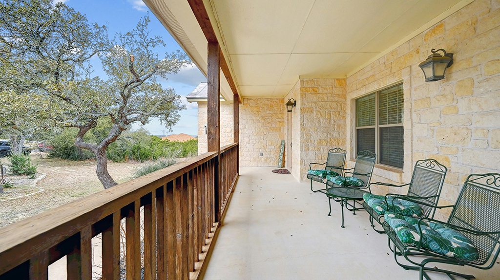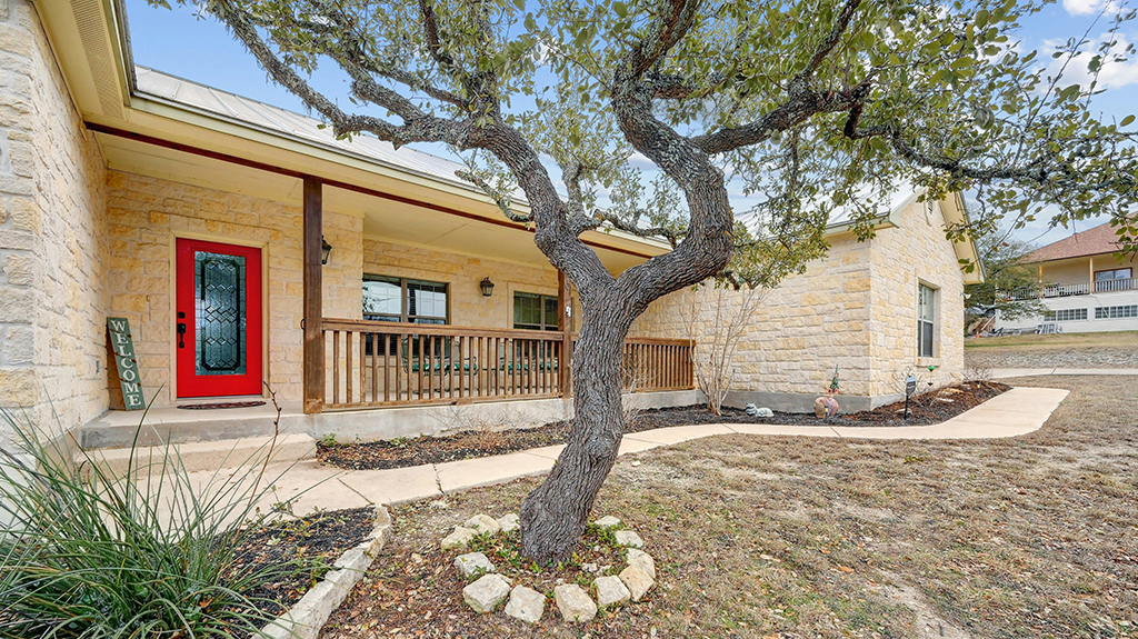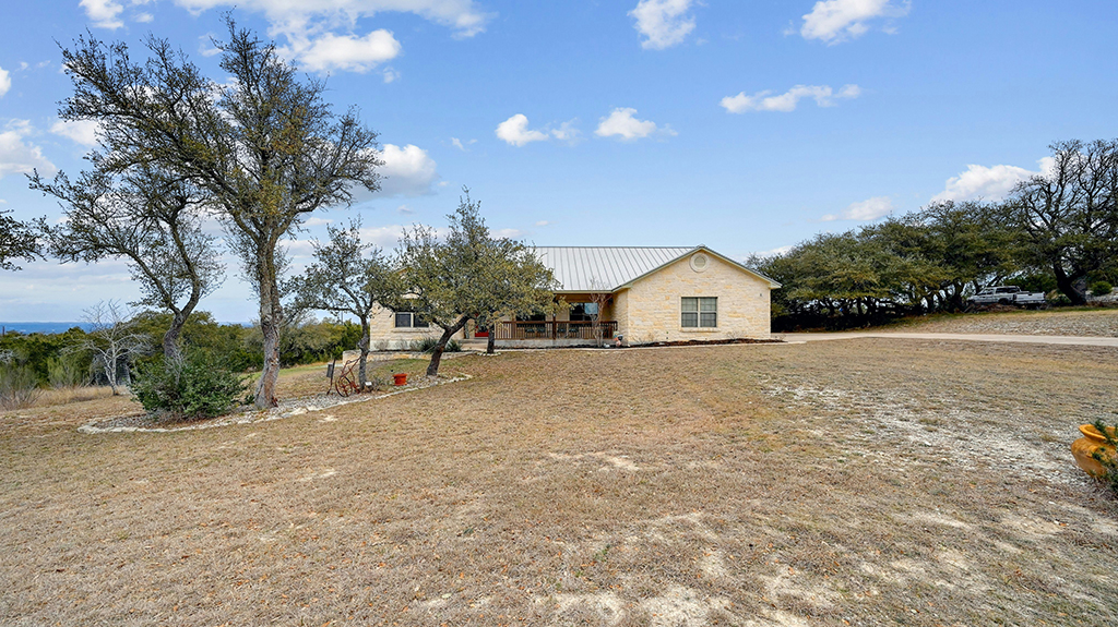 Nestled in the heart of the Texas hill country, this stunning residence is constructed with four-sided limestone masonry, a metal roof, and exudes durability and charm while offering three bedrooms including a spacious primary bedroom and two pristine bathrooms. A cozy fireplace anchors the inviting living area, while large picture windows in the breakfast nook and nature views from the kitchen seamlessly connect you with the outdoors. Enjoy serene moments on both the welcoming front porch and the expansive back porch, where views stretch out over miles of rolling hill country. With close proximity to Canyon Lake, Wimberley, Blanco, and San Antonio, this home is ideally situated for those seeking both a tranquil retreat and convenient access to vibrant local attractions. Sparkling clean and ready for move-in, this property is the perfect canvas to create lasting memories. Adjacent unimproved half acre lot also for sale.