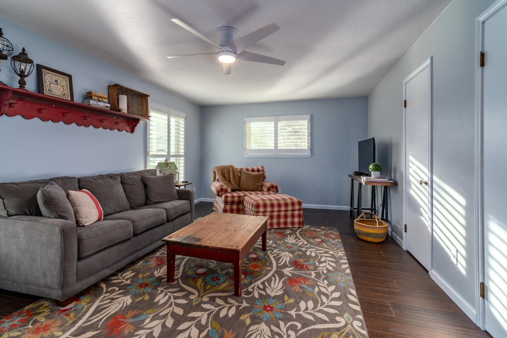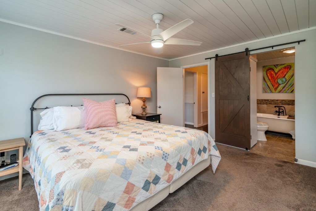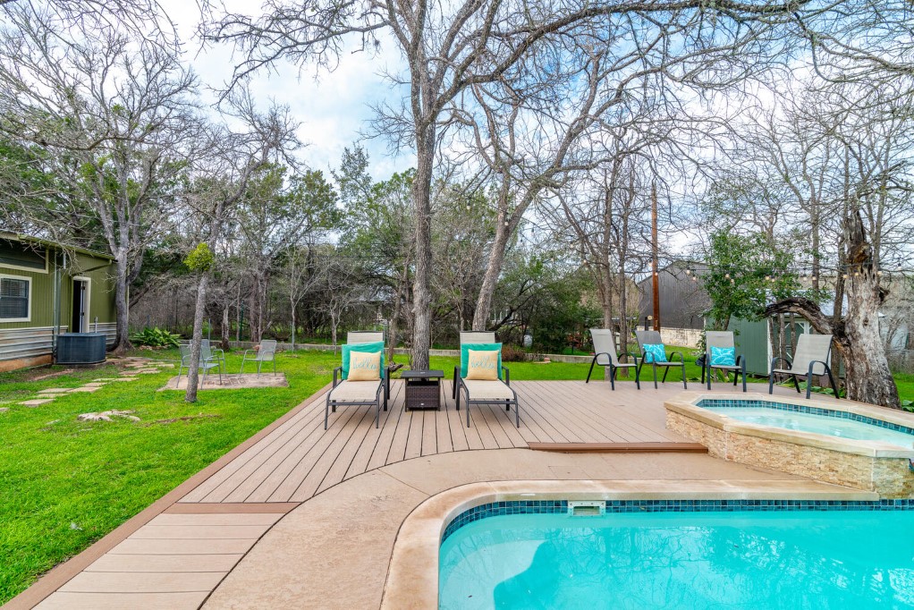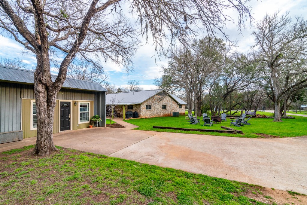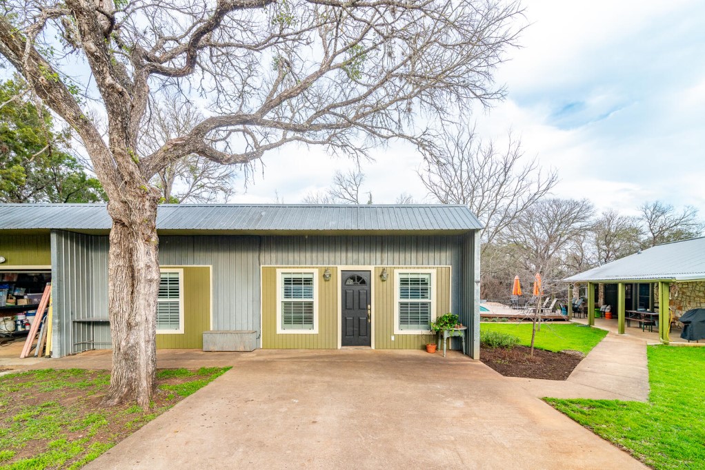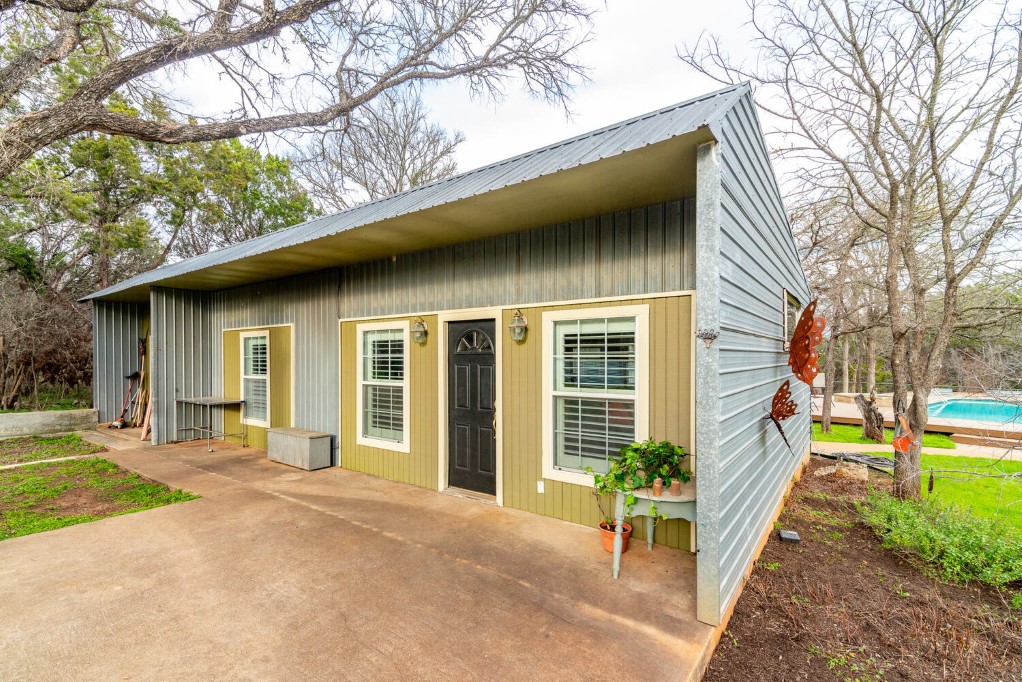 Welcome to Kellywood Estates. This one of a kind beautiful home is a must see! Quaint, quiet, secluded and private is just a glimpse of what this home offers. Do you desire to slow down and enjoy peace and tranquility at its finest. You will feel far away and yet you are close to dining, hiking and biking trails within miles. This home features a primary bedroom with a custom barn door that leads to the primary bath. The claw foot tub offers hours of unwinding and relaxation after a long day. The secondary bedrooms are spacious with walk in closets. The kitchen is an ultimate chef’s space with a pot filler, instant hot water at the hammered copper farmhouse sink, and plenty of room for gathering at the custom 12 ft. kitchen island. The island has a custom made countertop of pecan wood. The kitchen bay window adds an extra area of seating and storage underneath. Matching stainless steel KitchenAid appliances. It has plenty of storage with many cabinets, deep and wide drawers as well as a plentitude of upper cabinets. Entertain in style with the outdoor oasis with the swimming pool, spa and premium Trex decking surrounding the pool and spa. The back porch is covered and allows for plenty of room to sit and relax through all the seasons. Enjoy the twilight hours by camp fire light. The guest apartment is detached from the main home and offers a multitude of uses, from working from home, housing guests or income producing. Plentiful parking for your guests. Don’t miss out on the opportunity to make this beautiful home and acreage yours. Outside the city limits yet is in the Travis County ETJ.