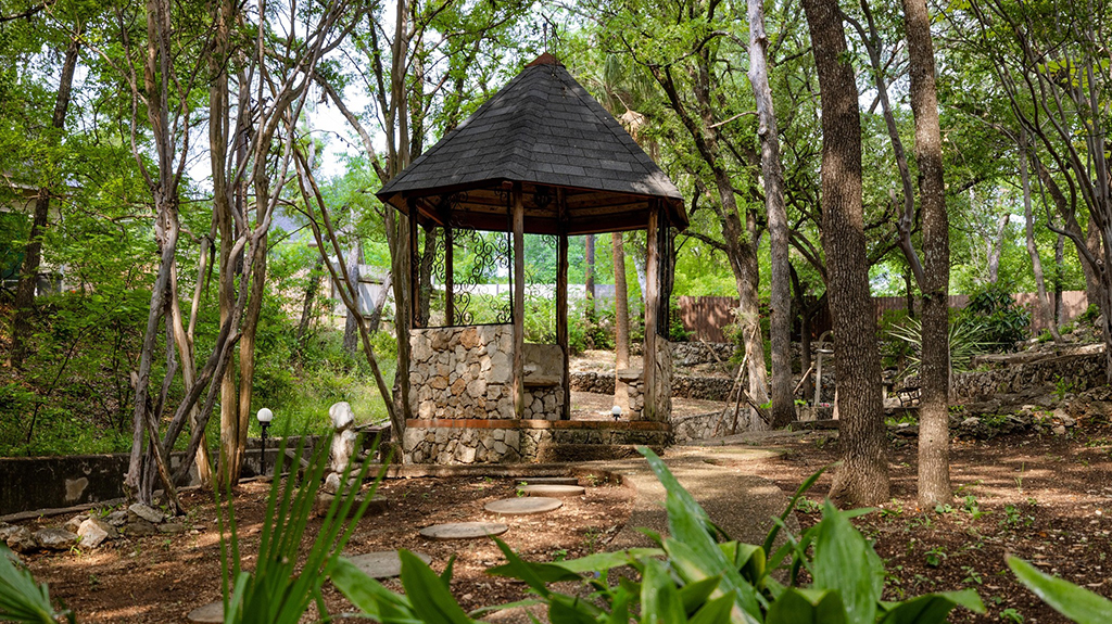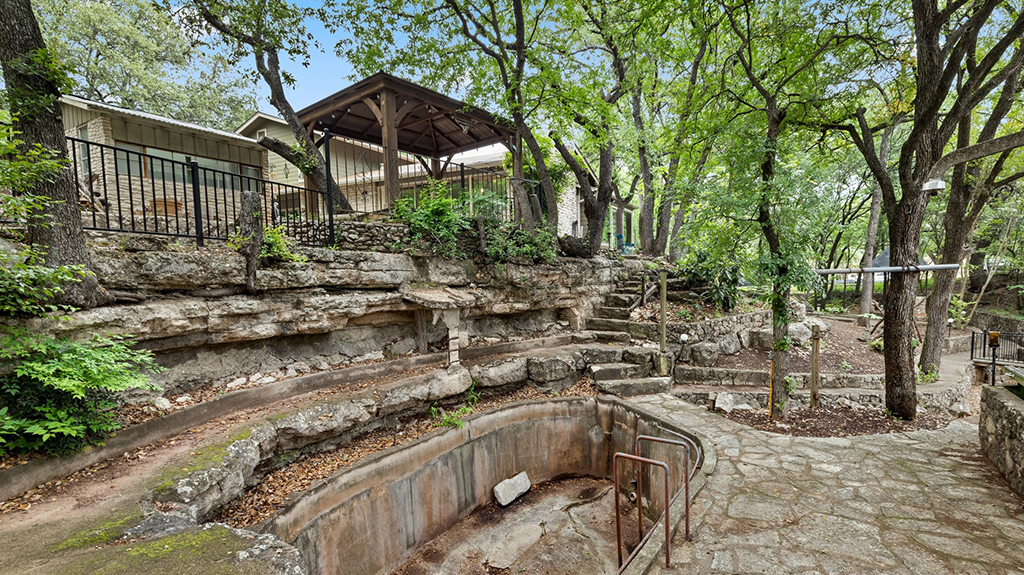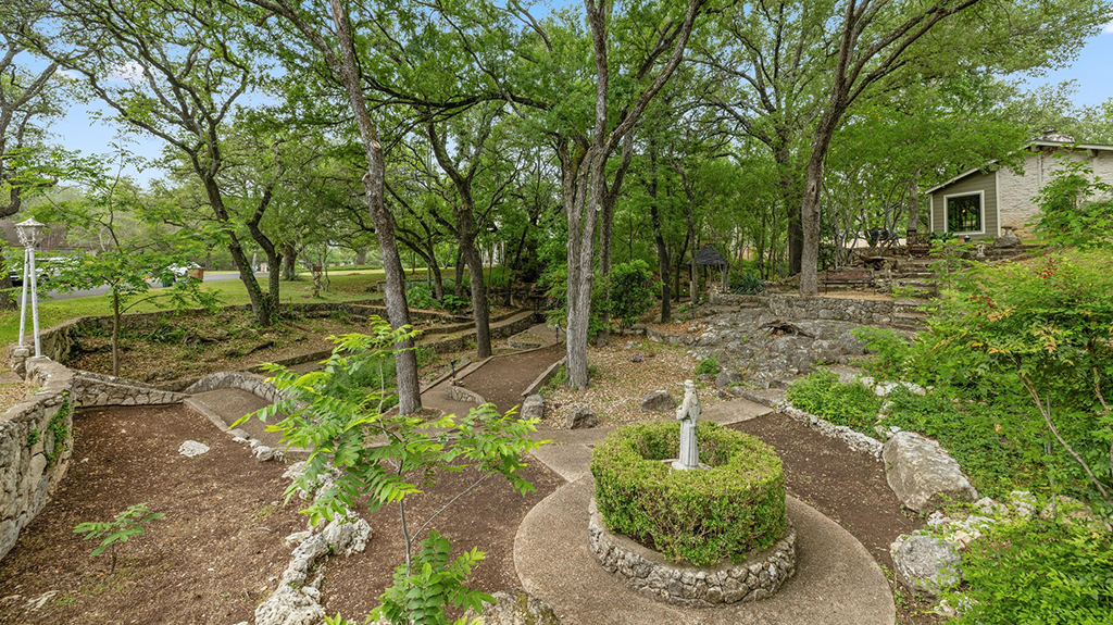 STORYBOOK GARDEN SETTING PROVIDES A SERENE BACKDROP TO THIS 4-BEDROOM BEAUTY. TWO PRIMARY BEDROOMS (ONE ON EACH FLOOR) PROVIDE OPTIONS FOR IN-LAW OR GUEST SPACE. LIVING AREA WINDOWS BRING THE OUTDOORS IN WITH A SCENIC PANORAMIC VIEW OF THE GARDEN, INCLUDING BRIDGES, A STONE GAZEBO, AND TREES A VARIETY OF BIRDS CALL HOME. TOO MANY UPDATES TO LIST. INCLUDES HARDWOOD FLOORS (‘14), REMODELED KITCHEN W/ CABINETRY AND GRANITE COUNTERS, BATHROOM COUNTERS, COMMODES AND SHOWER DOORS (‘14), LOW-E WINDOWS (‘14), RHEEM WATER HEATER (~’21), PAVED DRIVEWAY (‘22), ELECTRIC SUBPANEL (‘14). THE INTERIOR MODERN FEATURES BALANCE THE EXTERIOR TRANQUIL TOUCHES THAT WEAVE THROUGH THE PROPERTY, INCLUDING LIVE OAK TREES, STEPPING STONE PATHS, EVEN A REMNANT OF A ONCE SPRING-FED POOL. THE BACKYARD FLAGSTONE PATIO, FIRE PIT, GARDEN ROOM, AND SCULPTURES DOTTING THE LANDSCAPE COMPLETE THIS TRULY UNIQUE HOME.